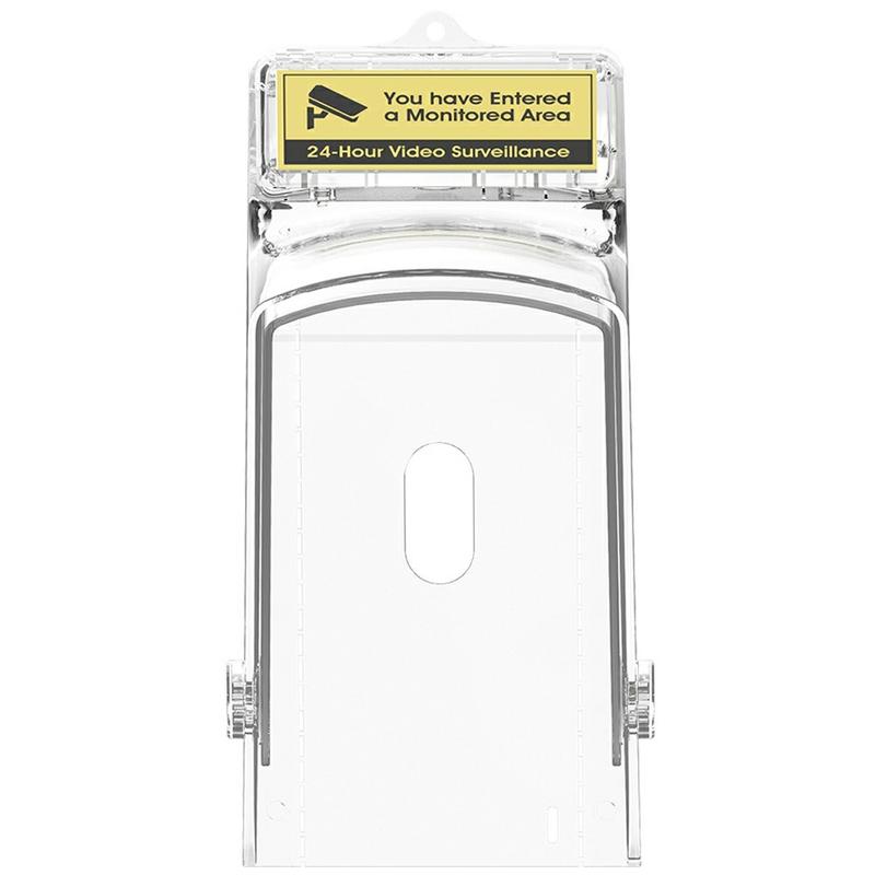 A fluorescent warning label on the top of the cover serves as a visual deterrent, alerting potential intruders to active monitoring and reducing the risk of tampering or theft.
