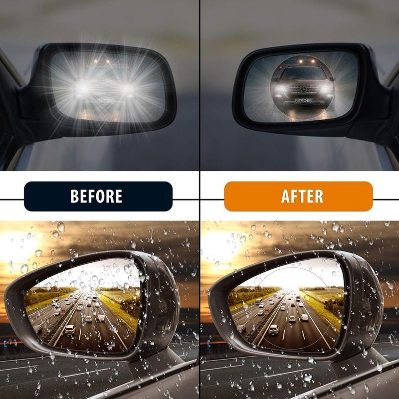 Ensure clear visibility in rainy and foggy conditions with these anti-fog and rainproof rearview mirror films. Made from high-quality PET material, this easy-to-install film improves safety by preventing fogging and water buildup, providing a clear rearview at all times. The set includes two films and installation tools.