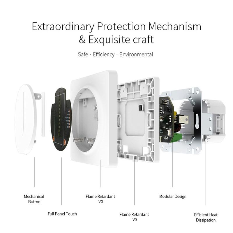 - European-standard size - 86 x 86 x 43 mm module fits existing wall switch boxes for a fast DIY retrofit.