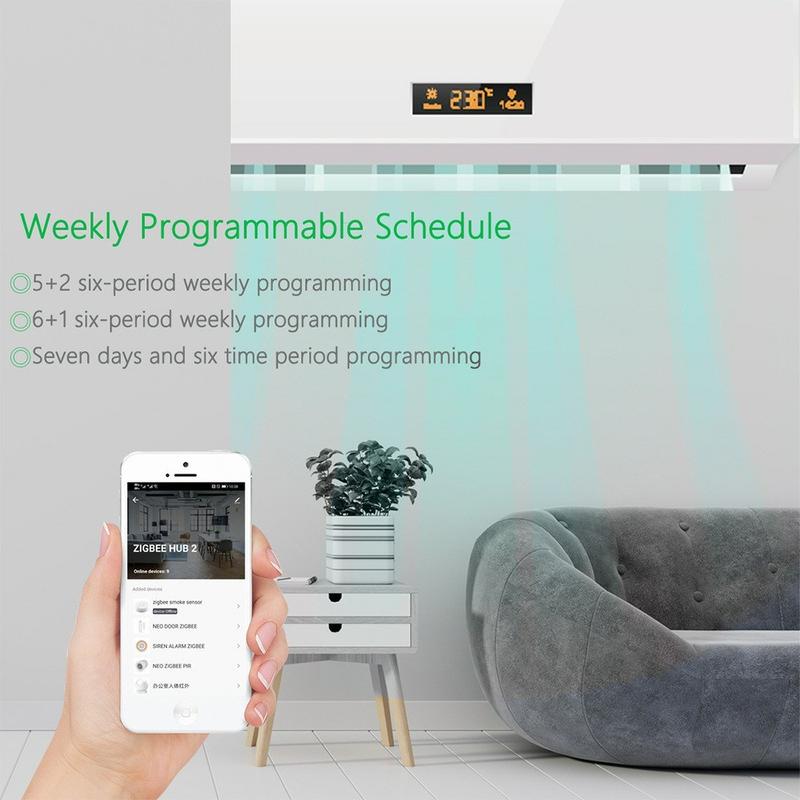 - Weekly programmer - Six time blocks per day, seven days a week, directly in the Tuya app—heat only when you need it.