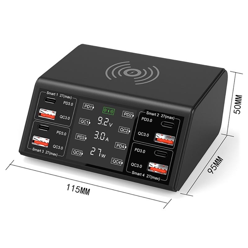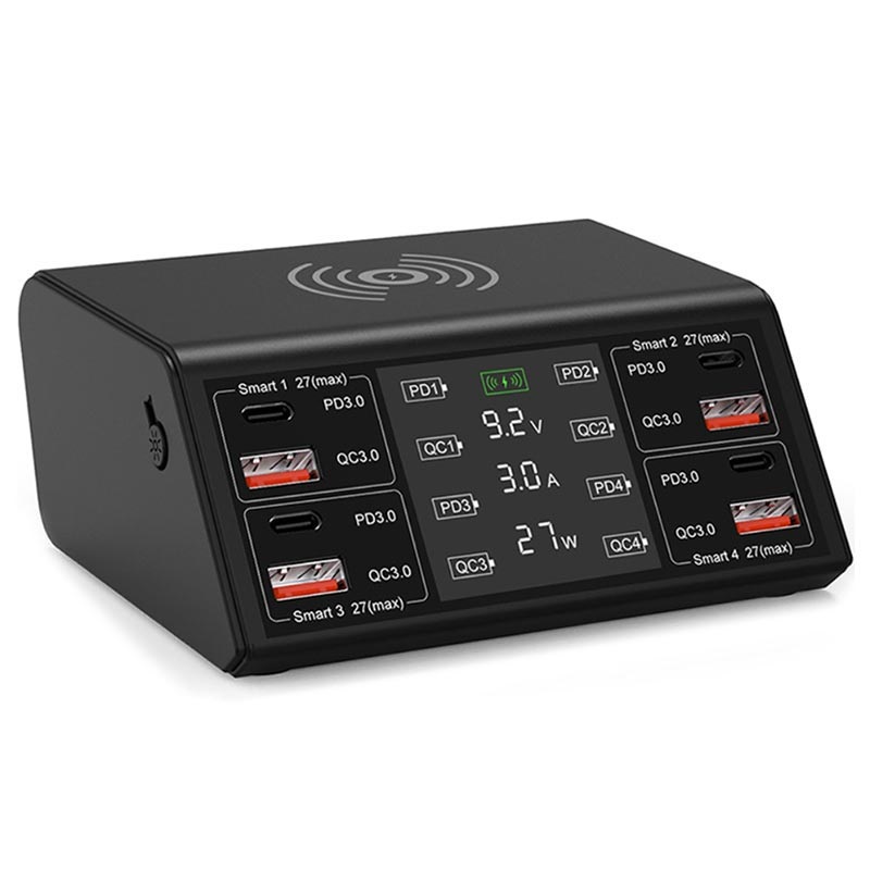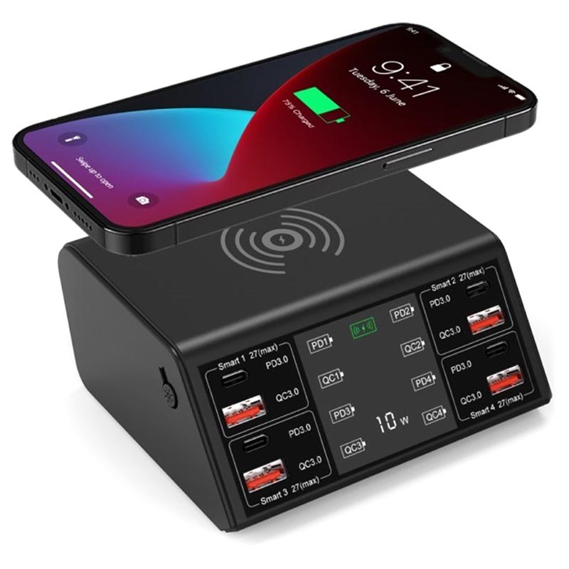 Rychlá Nabíjecí Stanice s Bezdrátovou Nabíječkou 838W - 100W, USB-A, USB-C, Qi