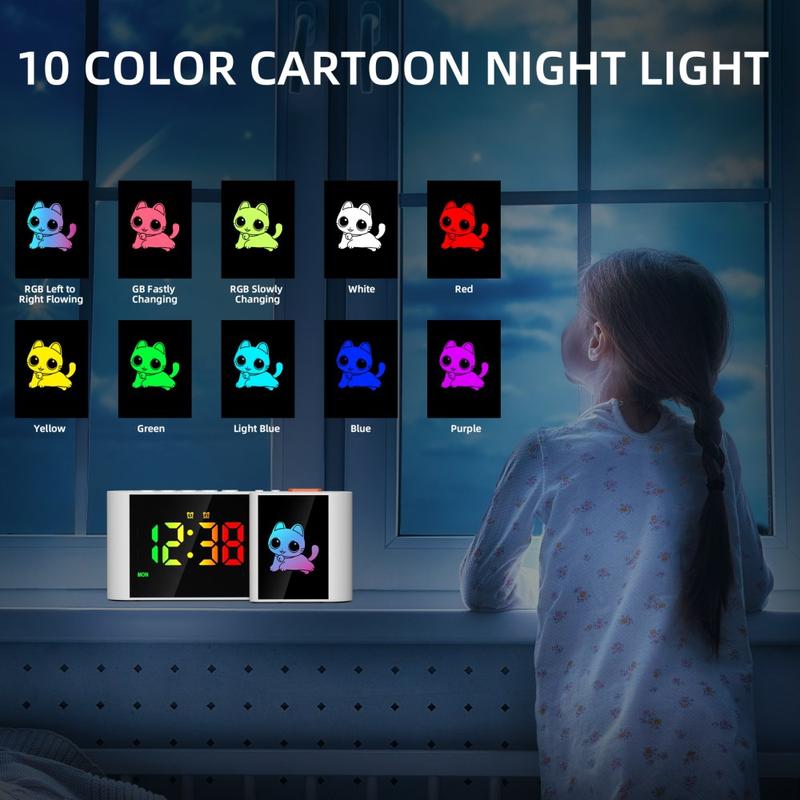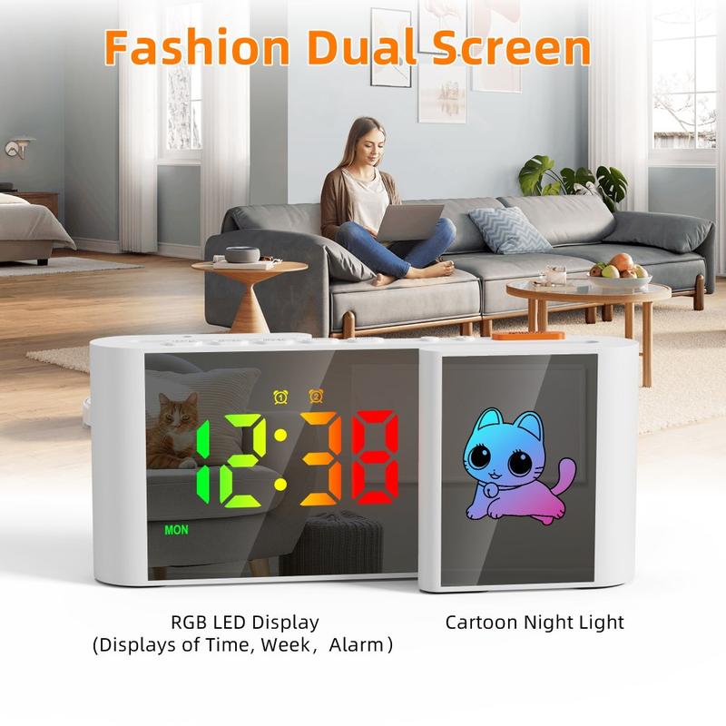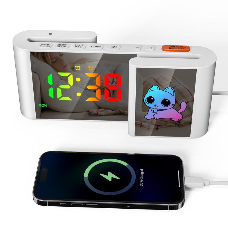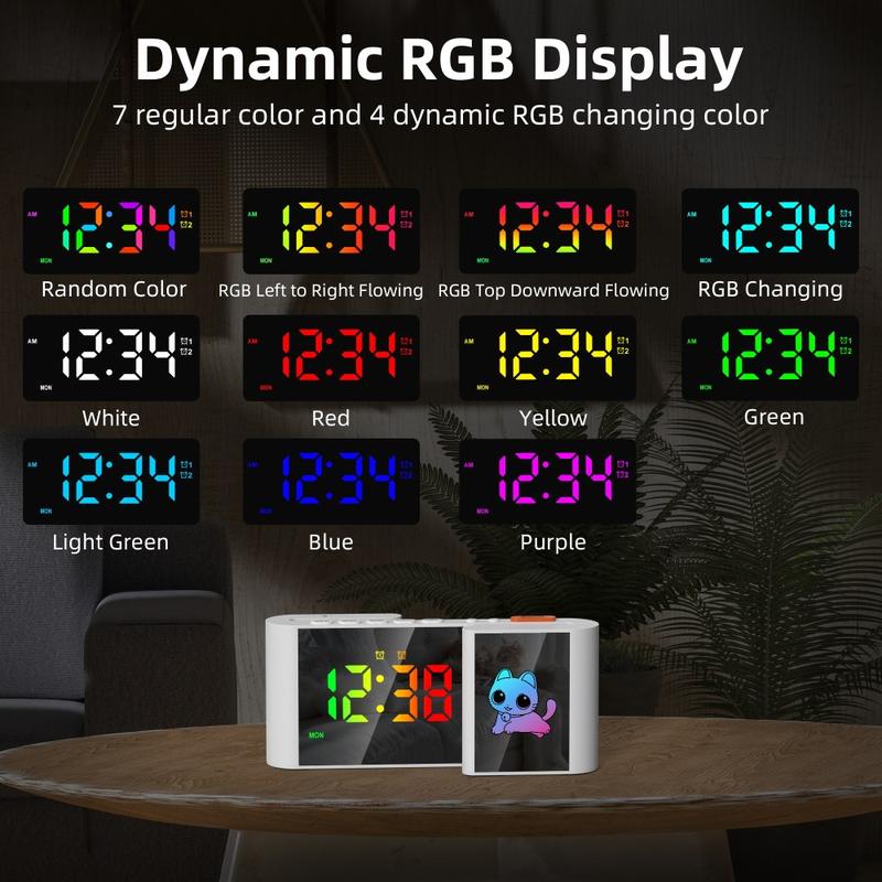 - Functions: Time, alarm, snooze, date, RGB night light, USB charging port