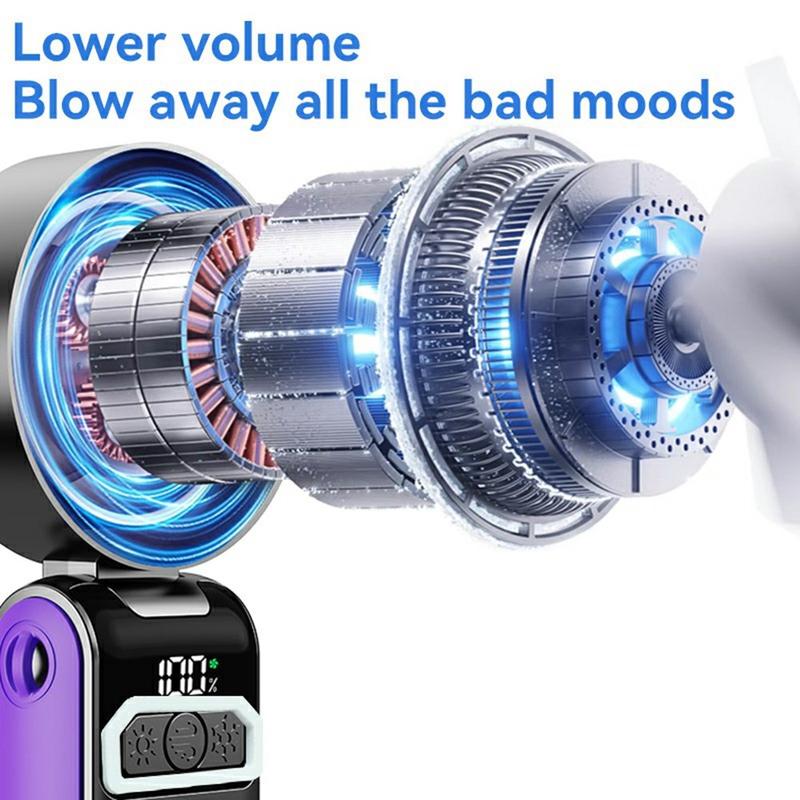 S2 Handheld Portable Turbo Fan - Rechargeable Pocket Fan with 100 Speeds, LED Display and Foldable 3-in-1 Design