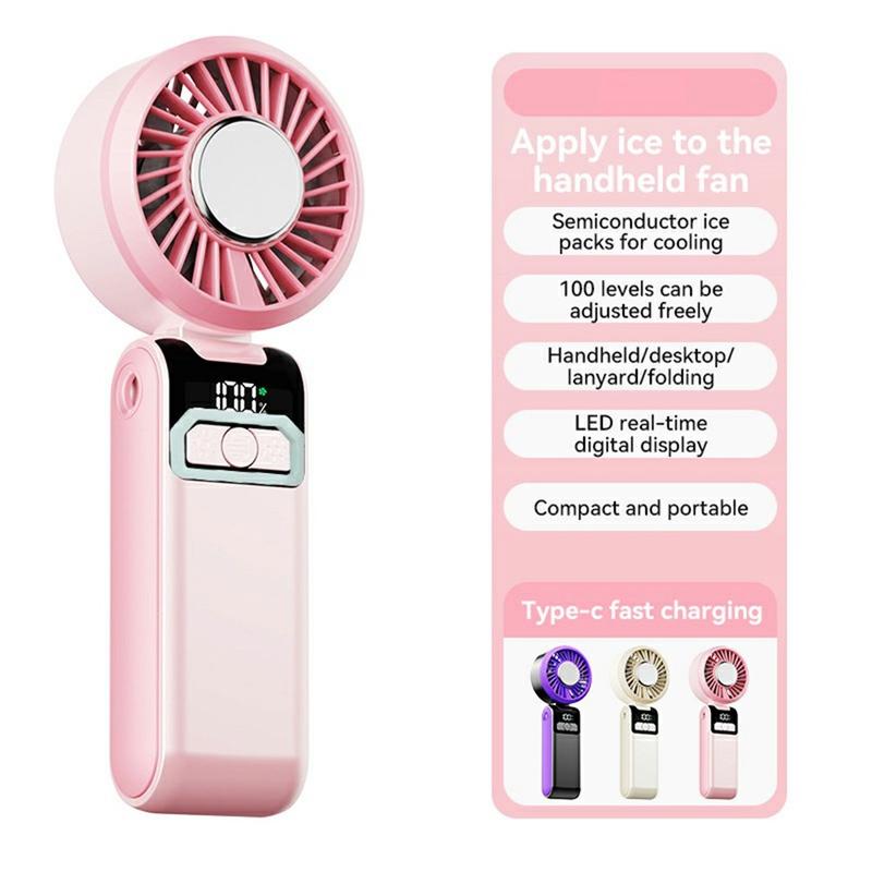 S2 Handheld Portable Turbo Fan - Rechargeable Pocket Fan with 100 Speeds, LED Display and Foldable 3-in-1 Design