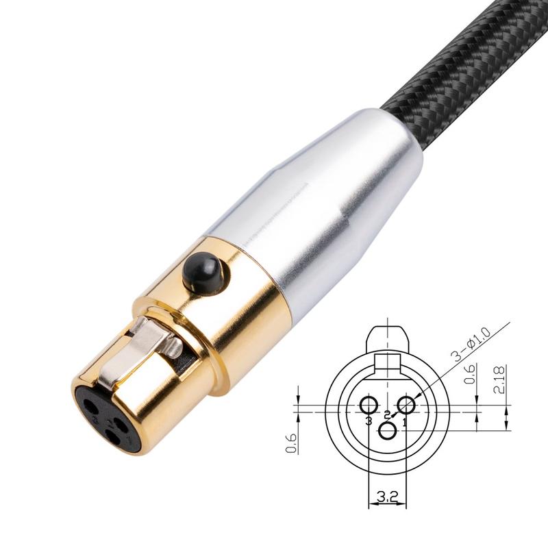 - Mini XLR (3-pin) female to XLR (3-pin) male for versatile audio connections