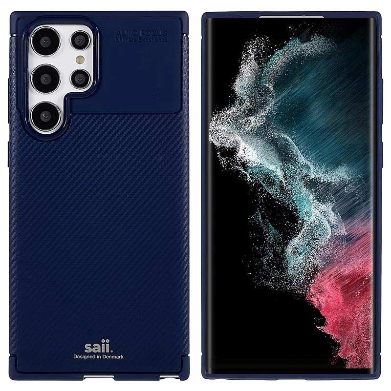 The unique Saii carbon fiber TPU case ensures a proper shield for the back of the Samsung Galaxy S22 Ultra 5G while protecting the display from scratches with its raised bezels. Precisely designed to fit your Samsung Galaxy S22 Ultra 5G perfectly and adds a new, upgraded look.