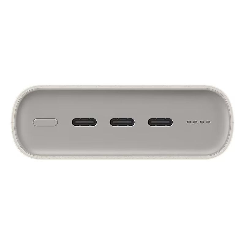 The Samsung 20000mAh Battery Pack is a high-capacity portable charger that features super-fast charging capabilities. Equipped with 45W Super Fast Charge 2.0 and Power Delivery 3.0, this battery pack can rapidly recharge compatible third-party and Samsung devices, including the battery pack itself, when it's low. It also features USB-C connectivity to ensure you can charge your devices on the go. The Triple Port design allows for simultaneous charging of three devices, providing added convenience and power when it is needed most. This battery pack is also environmentally friendly, as it is thoughtfully designed using UL-certified recycled materials to reduce carbon emissions and preserve valuable resources while giving new life to consumer waste.