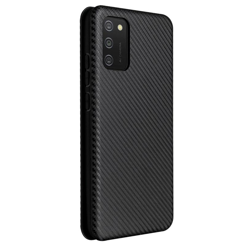 Samsung Galaxy A02S Flip pouzdro - uhlíkové vlákno