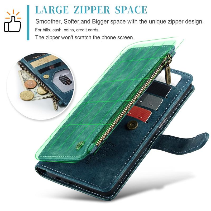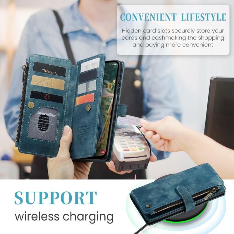 The Caseme C30 multifunctional wallet case for Samsung Galaxy A15 brings exceptional all-around protection and an exclusive, refined design. This elegant case is made of premium polyurethane, reinforced with a shock-resistant TPU inner cover that snuggles your Samsung Galaxy A15 perfectly. Meanwhile, the Caseme C30 wallet case is enhanced with numerous card slots, one large money compartment inside, and one outside zipper pocket, all protected by a secure magnetic closure.