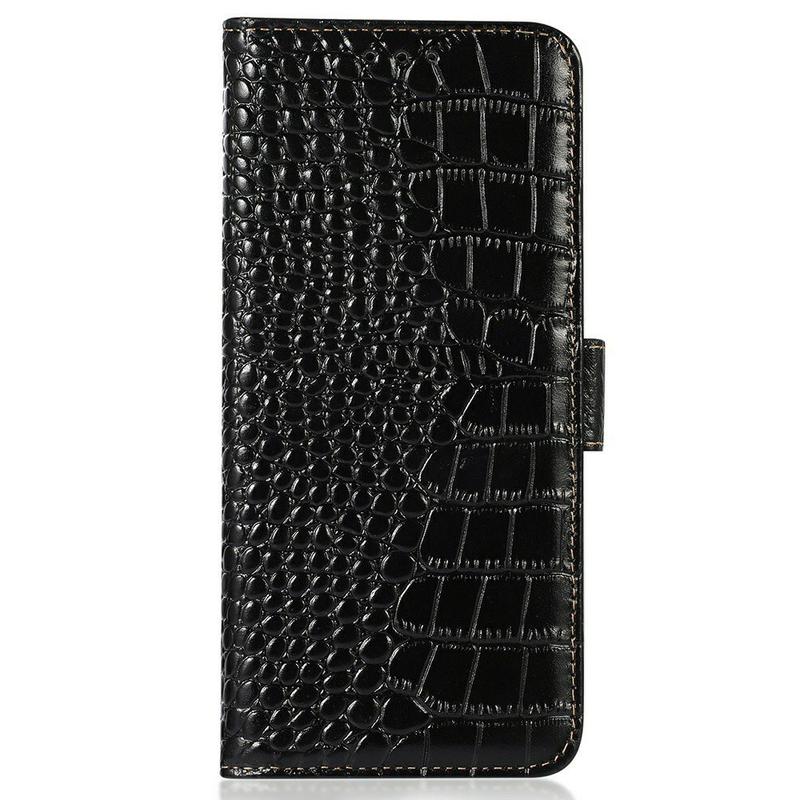 A lightweight and soft wallet case with a unique crocodile texture, the perfect choice to protect your Samsung Galaxy A27 and keep it undamaged. It's made of high-quality genuine leather and inner TPU material, designed with three card slots, an ID slot, and a pocket for cash, ideal for carrying your essentials next to your Samsung Galaxy A27. Also, RFID technology effectively blocks signals and keep's your data secured.