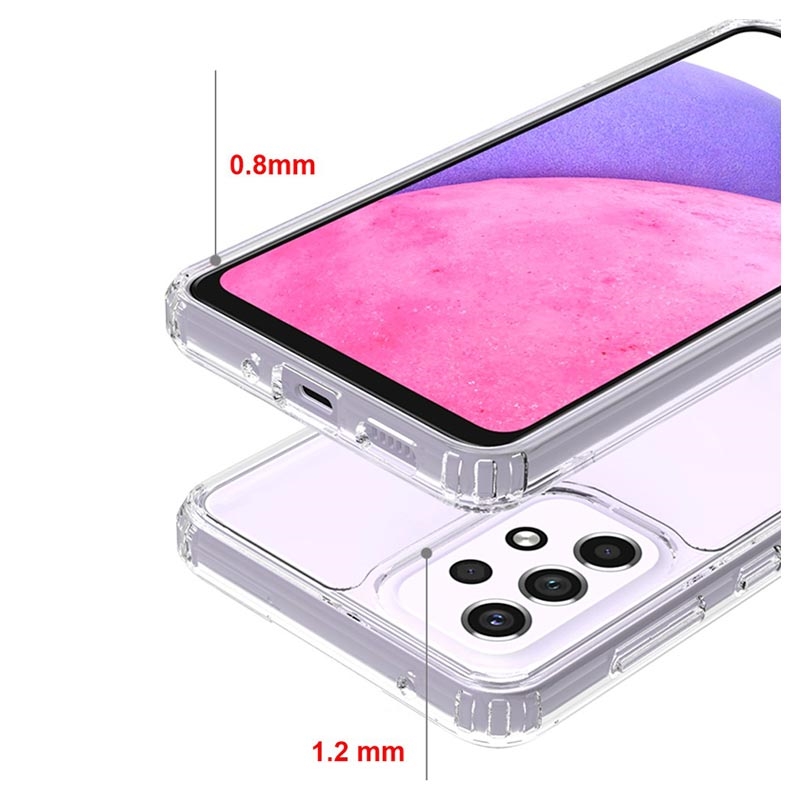 Díky návrhu duální vrstvy, která kombinuje krystalně čirý akrylový materiál a měkké okraje TPU, tento ultra tenký Samsung Galaxy A33 5G kryt zabrání poškození, ke kterému by se mohlo vyskytnout při každodenním používání. Obal je lehký a cítí se skvěle ve vaší ruce. Tlačinová, ale snadno lisovací tlačítka a výřez pro porty umožňují snadný provoz smartphonu, jako by neměl kryt.