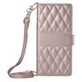 Luxury Quilted Wallet Case with Shoulder & Wrist Strap for Samsung Galaxy A37 - Rhombus Pattern Protective Cover