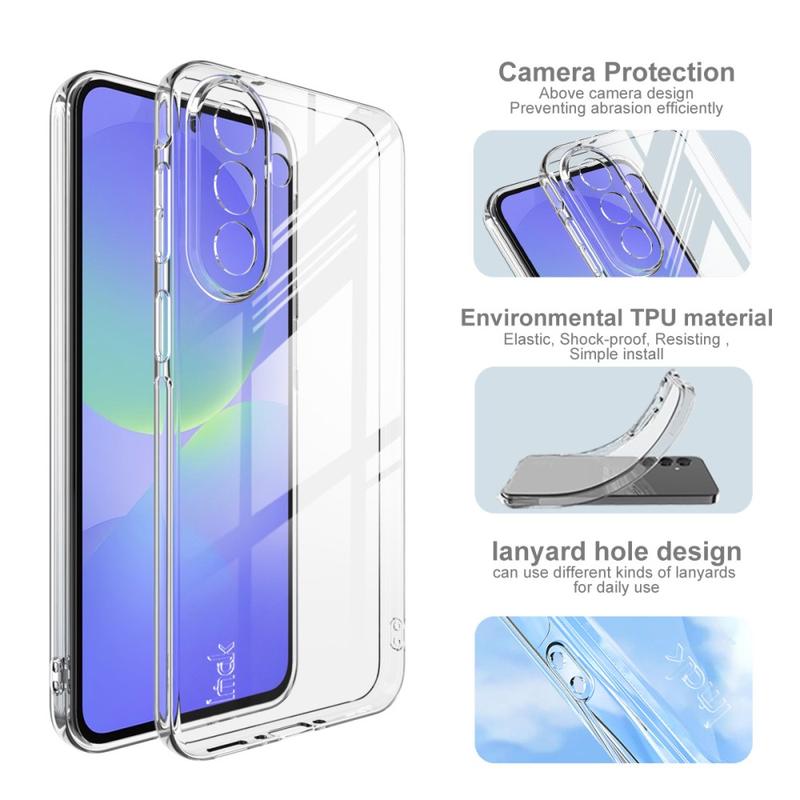 Protect your Samsung Galaxy A37 without hiding its design with the Imak UX-5 Transparent TPU Case. Crafted from high-quality TPU, this case combines slim, lightweight comfort with shockproof protection, keeping your phone safe from everyday bumps and drops. With a thickness of just 1mm, it maintains the sleek feel of your phone while ensuring a comfortable grip. The high transparency finish allows the original beauty of your Samsung Galaxy A37 to shine through, while raised lips around the camera and screen add extra scratch resistance. Precise cutouts guarantee full access to all buttons, ports, and features without the need to remove the case.