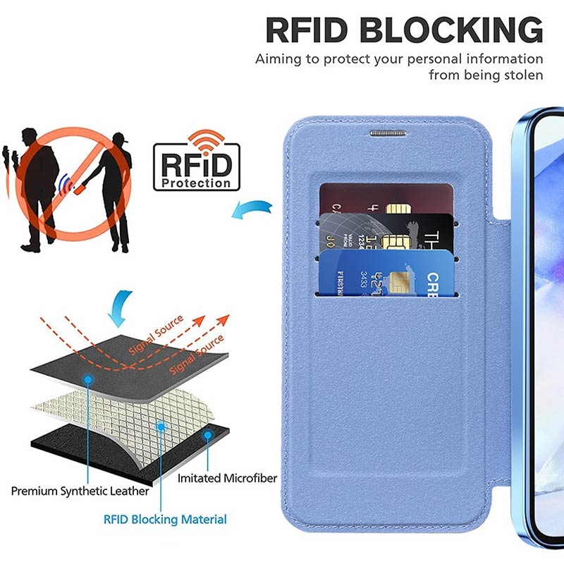 This premium Samsung Galaxy A55 case is crafted with high-quality TPU, Acrylic, and polyurethane, using a fine process to ensure a delicate and exquisite finish. It is equipped with a convenient card slot for easy swiping and spending on the go, and features a strong magnet for automatic closing, making it safe and convenient to manage items inside. This Samsung Galaxy A55 case provides effective protection against daily wear and tear, scratches, marks, and scrapes, while the advanced RFID blocking technology in the card slot ensures your personal information is protected from theft. Additionally, the built-in magnetic ring is compatible with MagSafe wireless charging, meaning you can charge your Samsung Galaxy A55 without taking off the case.