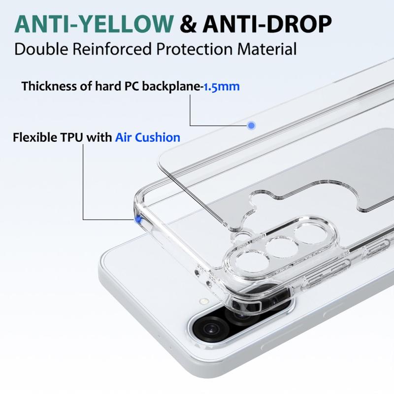 Toto příslušenství využívá kombinaci akrylu a TPU, aby udrželo váš smartphone v původním stavu. Mezitím vyztužené rohy tlumící nárazy zabraňují poškození při pádu, zatímco průhledný design předvádí nádherný design vašeho telefonu Samsung Galaxy A56.