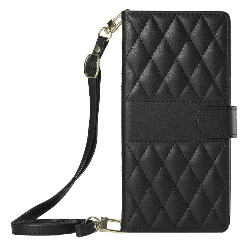 Luxury Quilted Wallet Case with Shoulder & Wrist Strap for Samsung Galaxy A57 - Rhombus Pattern Protective Cover