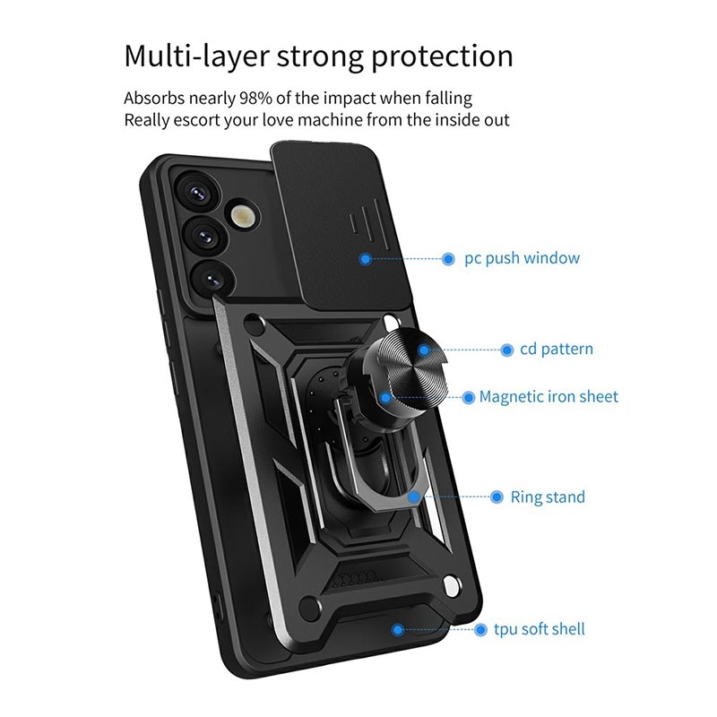 - Rotary Ring hybrid case with camera shield for Samsung Galaxy A57