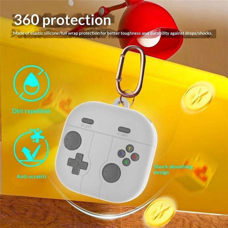 Protect your Samsung Galaxy Buds 4, Galaxy Buds 4 Pro in a fun retro style with this gamepad-inspired silicone case. Designed for daily use, it adds 360-degree coverage to help protect your charging case from scratches, scuffs, and minor drops while keeping the lid secure and the case easy to handle. The liquid silicone material feels soft in hand and helps improve grip, making the earbuds case less likely to slip from pockets or hands.
