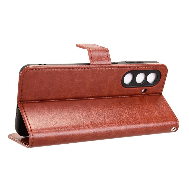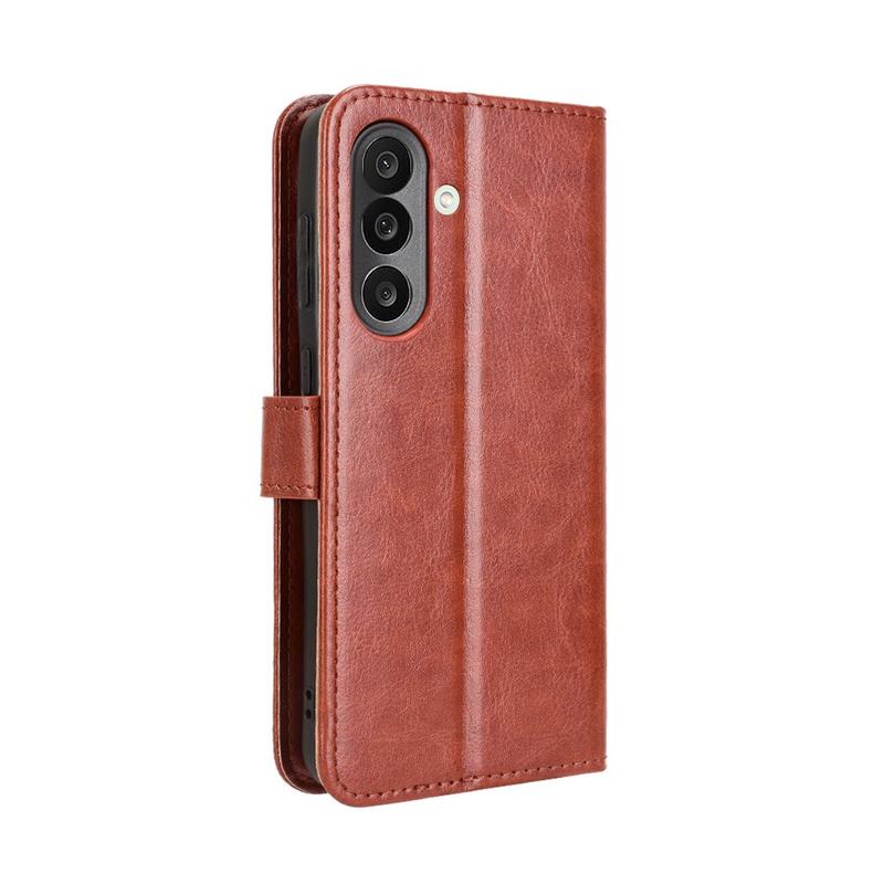 Give your new Samsung Galaxy M56 a refined, vintage look while replacing your everyday wallet. The Crazy Horse-textured polyurethane exterior pairs with a shock-absorbing TPU shell to guard against drops and scratches, while clever pockets keep cards and cash organised.
