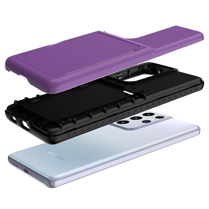 Obnovte vzhled vašeho Samsung Galaxy S21 Ultra 5G s tímto elegantním hybridním pouzdrem! Abychom vždy vypadali perfektně, existuje snadno dostupné zrcadlo. Usnadněte nakupování se dvěma sloty pro kreditní karty. Odložené okraje navíc chrání váš Samsung Galaxy S21 Ultra 5G.