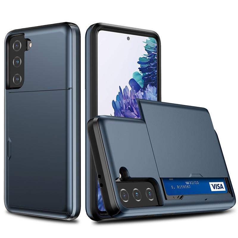 Samsung Galaxy S21 FE 5G Hybrid Case with Sliding Card Slot - Dark Blue