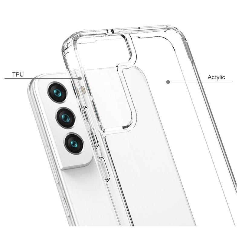 Díky návrhu duální vrstvy, která kombinuje krystalně čirý akrylový materiál a měkké okraje TPU, tento ultra tenký Samsung Galaxy S22 5G kryt zabrání poškození, ke kterému by se mohlo vyskytnout při každodenním používání. Obal je lehký a cítí se skvěle ve vaší ruce. Tlačinová, ale snadno lisovací tlačítka a výřez pro porty umožňují snadný provoz smartphonu, jako by neměl kryt.