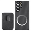 Samsung Galaxy S22 Ultra 5G Magnetická pouzdra s držákem karty - uhlíkové vlákno