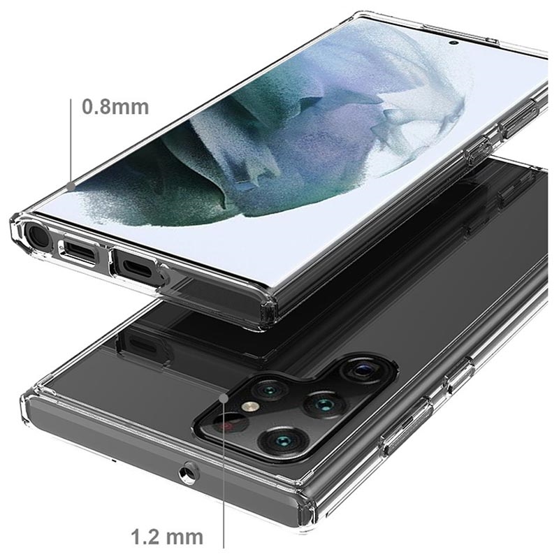 Toto příslušenství využívá kombinaci akrylu a TPU, aby udrželo váš smartphone v původním stavu. Mezitím vyztužené rohy tlumící nárazy zabraňují poškození při pádu, zatímco průhledný design předvádí nádherný design vašeho telefonu Samsung Galaxy S22 Ultra 5G.
