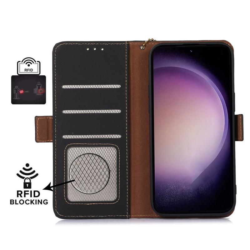 - Kožené pouzdro na peněženku s RFID blokující vrstvou pro Samsung Galaxy S23 FE