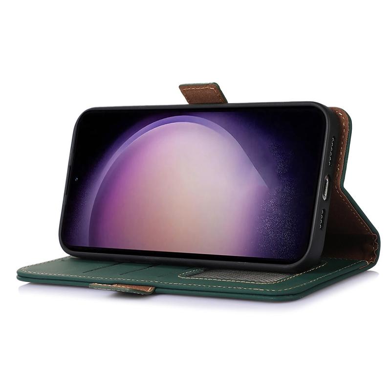 - Kožené pouzdro na peněženku s RFID blokující vrstvou pro Samsung Galaxy S23 FE