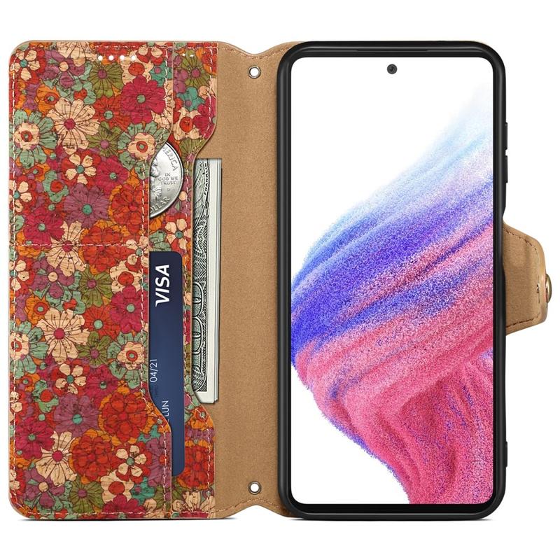The Four Seasons Wallet Case is a stylish and functional accessory for your Samsung Galaxy S24. Made with high-quality PU and TPU inner case, it provides effective protection for your phone. The case is printed with beautiful flower patterns, making it unique and eye-catching. It is also designed with a card slot and cash pocket, allowing you to carry your essential belongings with ease. The magnetic clasp ensures convenient use and keeps your valuables safe inside. Additionally, the flip phone cover can be switched to a viewing and typing stand to satisfy your needs. With full body protection, the case protects the phone from dirt, scratches, drops, and impact, while the reserved receiver hole allows you to talk with the case closed.