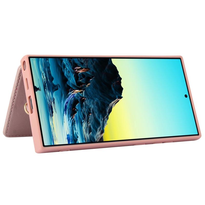 The Samsung Galaxy S24 Ultra Flower Decor Case is crafted from polyurethane and TPU materials, providing durable protection. The stylish design features flowers on the back of the case and hand strap. It includes a card slot for storing up to 4 essential cards, and the back card holder can also be used as a kickstand for multiple viewing angles. The magnetic button keeps the cards secure, while precise cutouts allow full access to all buttons and ports. Protect your phone from daily damage with this convenient case that comes with a hand strap and shoulder strap for easy carrying.
