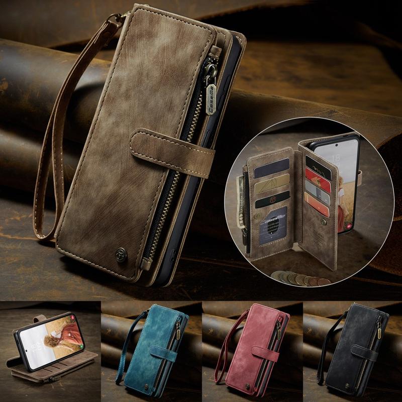 The Caseme C30 multifunctional wallet case for Samsung Galaxy S24 FE brings exceptional all-around protection and an exclusive, refined design. This elegant case is made of premium polyurethane, reinforced with a shock-resistant TPU inner cover that snuggles your Samsung Galaxy S24 FE perfectly. Meanwhile, the Caseme C30 wallet case is enhanced with numerous card slots, one large money compartment inside, and one outside zipper pocket, all protected by a secure magnetic closure.