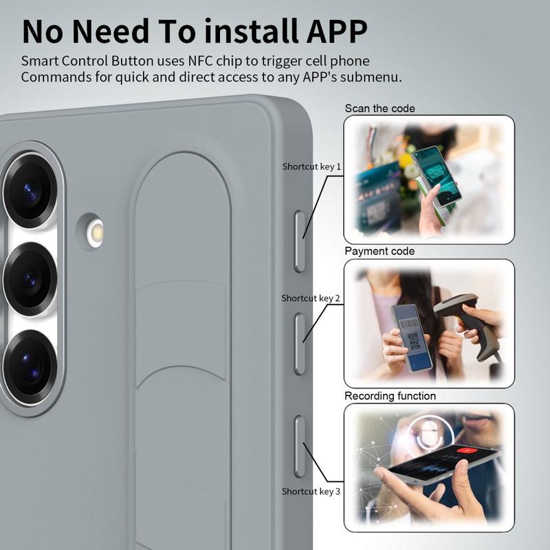 Smart Hybrid Case with Standing Grip for Samsung Galaxy S24+ - NFC Customizable Shortcut Keys, Wristband Kickstand & Alloy Camera Protection