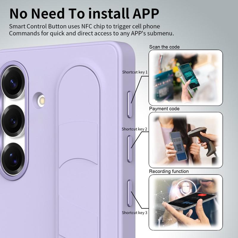 Smart Hybrid Case with Standing Grip for Samsung Galaxy S24+ - NFC Customizable Shortcut Keys, Wristband Kickstand & Alloy Camera Protection