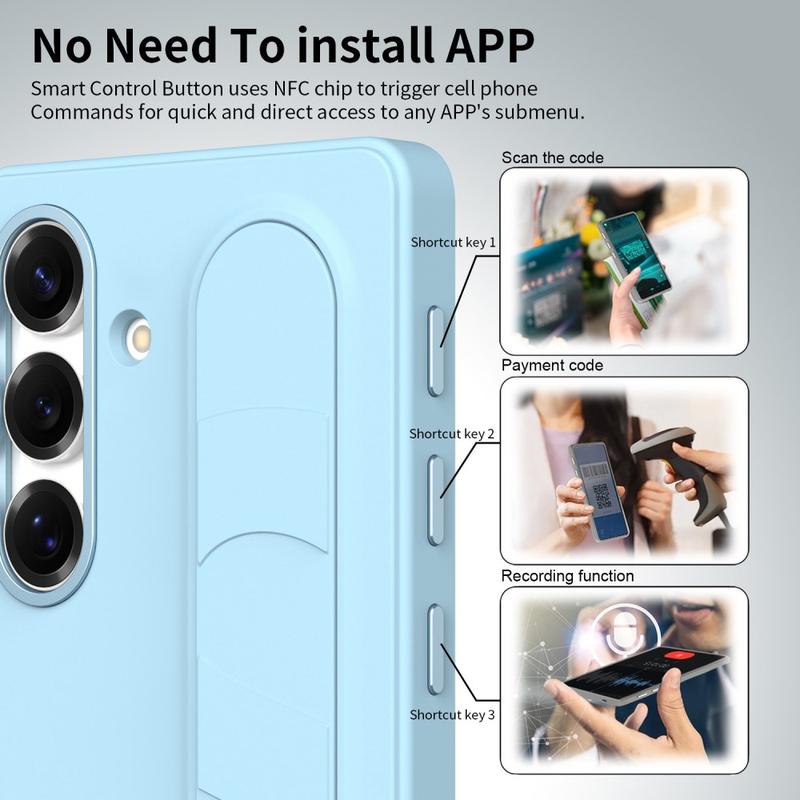 Smart Hybrid Case with Standing Grip for Samsung Galaxy S24+ - NFC Customizable Shortcut Keys, Wristband Kickstand & Alloy Camera Protection