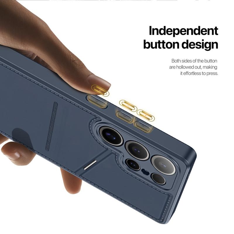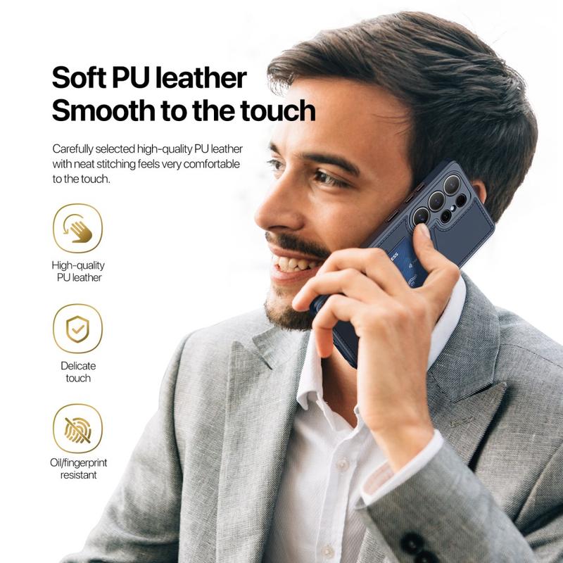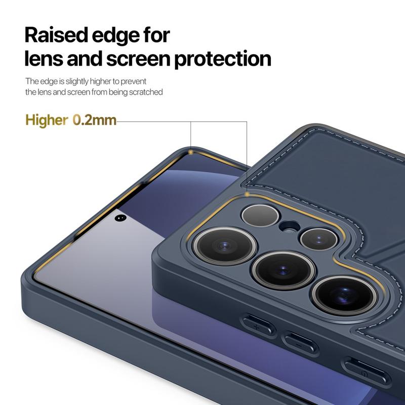 Keep your Samsung Galaxy S25 Ultra safe and stylish with the Dux Ducis Rafi II Series Magnetic Case. This premium case combines a sleek leather finish with a durable TPU interior for comprehensive protection. Designed for functionality, it includes a built-in kickstand, magnetic closure, and card slots, making it ideal for users who need both convenience and elegance.