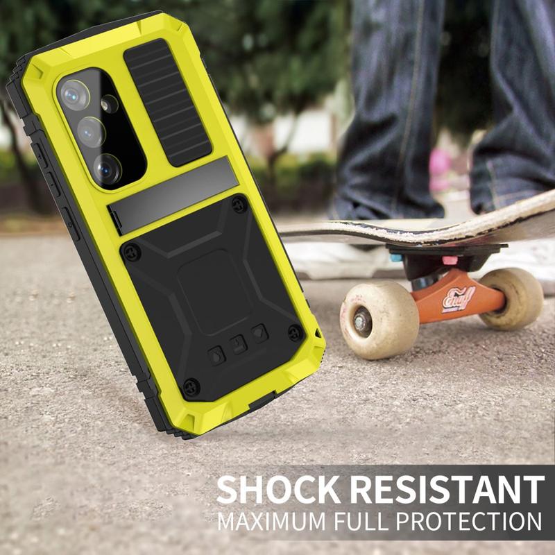 Experience unmatched protection and functionality with the R-Just Case for Samsung Galaxy S25. Built for durability, this hybrid case combines PC, silicone, and metal materials for comprehensive defense against everyday wear and tear. With its integrated kickstand and included tempered glass film, this case offers premium practicality without compromising style. Designed for the modern user, it’s the ideal accessory to protect your device while maintaining sleek aesthetics.