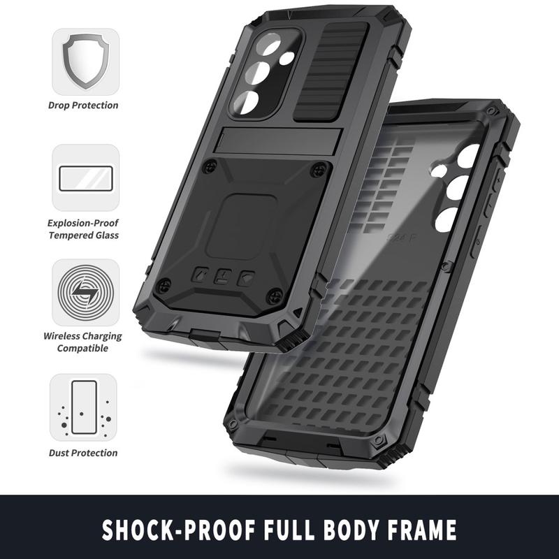 Experience unmatched protection and functionality with the R-Just Case for Samsung Galaxy S25. Built for durability, this hybrid case combines PC, silicone, and metal materials for comprehensive defense against everyday wear and tear. With its integrated kickstand and included tempered glass film, this case offers premium practicality without compromising style. Designed for the modern user, it’s the ideal accessory to protect your device while maintaining sleek aesthetics.