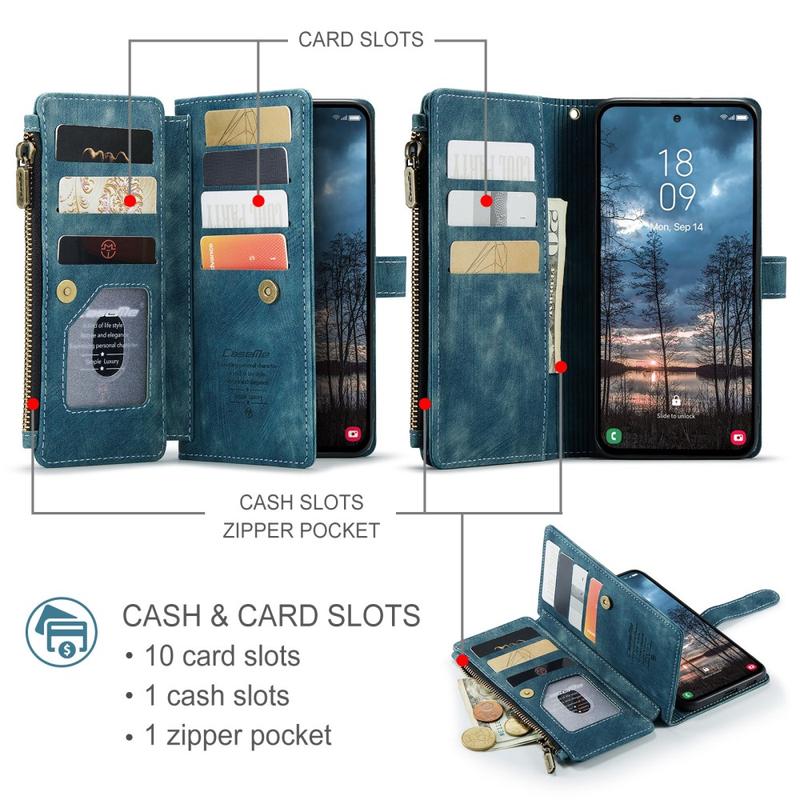 The Caseme C30 multifunctional wallet case for Samsung Galaxy S25 Edge brings exceptional all-around protection and an exclusive, refined design. This elegant case is made of premium polyurethane, reinforced with a shock-resistant TPU inner cover that snuggles your Samsung Galaxy S25 Edge perfectly. Meanwhile, the Caseme C30 wallet case is enhanced with numerous card slots, one large money compartment inside, and one outside zipper pocket, all protected by a secure magnetic closure.