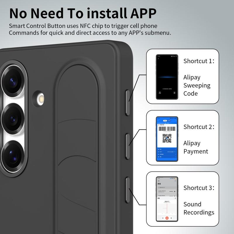 Equipped with three intelligent NFC-enabled buttons, this smart hybrid case lets you set up quick access to apps like Camera, Flashlight, or Screenshot with a single press. No charging, no extra apps - just simple, instant functionality.