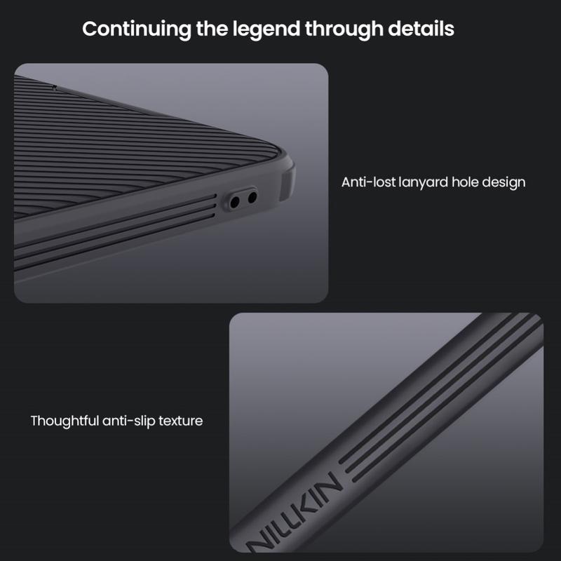 - Toto mimořádné hybridní pouzdro Nillkin CamShield Prop je vyrobeno z plastu a materiálů TPU