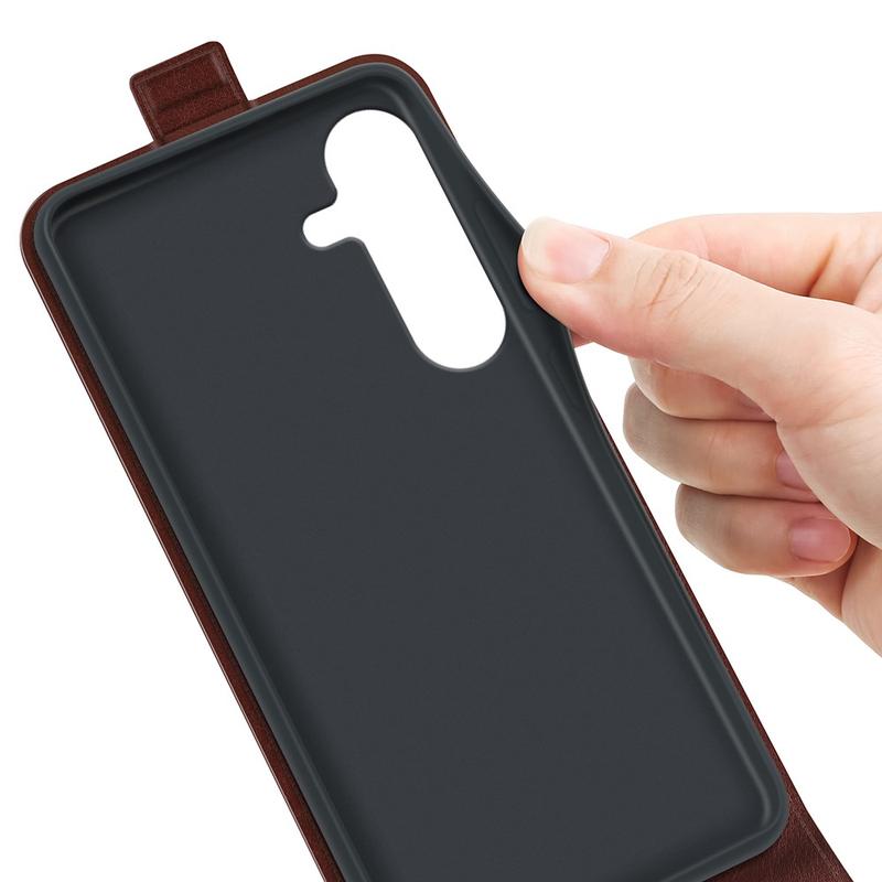 - Toto kvalitní vertikální flipové pouzdro pro Samsung Galaxy S25 je vyrobeno z polyuretanu a TPU