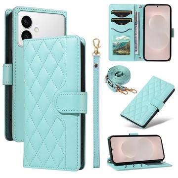 Protect your Samsung Galaxy S26 Edge with this luxurious quilted wallet case. Constructed with TPU material coated with PU leather, this case is scratch-resistant and anti-fingerprint, keeping your phone looking stylish and sleek. The stitching line forms a rhombus grid pattern, adding a fashionable and beautiful touch to the case. The raised edge of the camera and screen offers effective protection against scratches, while the precise cutouts provide full access to all buttons, ports, and other features. The wallet design allows for easy storage of essential cards and cash. With added protection against scratches, impact, drops, and daily damage, this case also comes with a shoulder strap and wrist strap for added convenience.