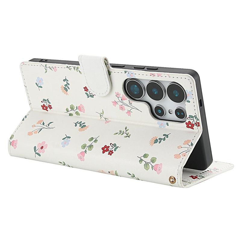 Rhombic Floral Wallet Case for Samsung Galaxy S26 Ultra - with Strap and Card Slots