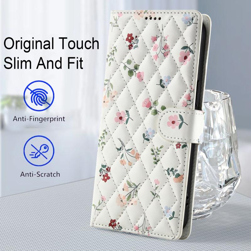 Refresh your Samsung Galaxy S26 Pro with a slim flip wallet that blends secure protection and everyday practicality. The rhombic stitched front and tiny floral pattern add elegant style, while a soft TPU shell cushions drops and a polyurethane wrap guards against scratches. Multiple card slots, a cash pocket and an included wrist strap make this case the one-stop carry solution for commute, travel or night out.