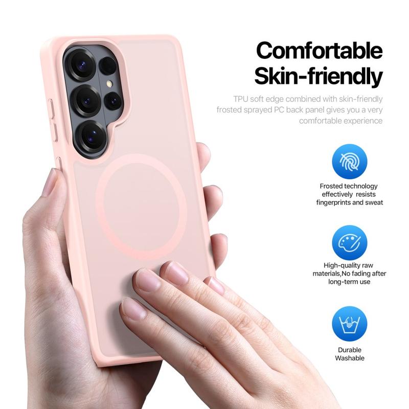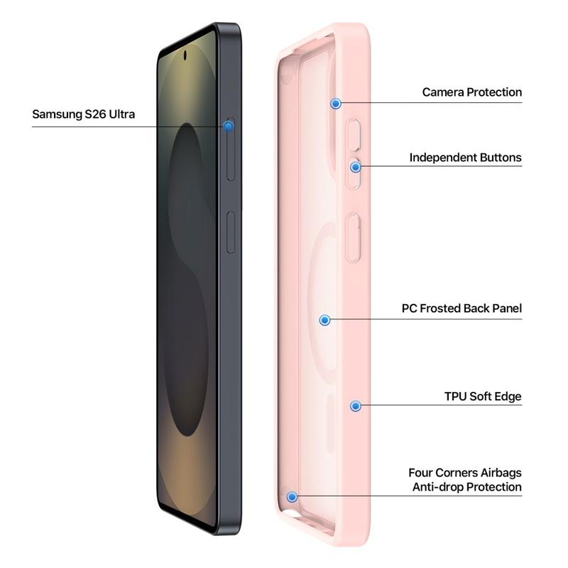 Protect your Samsung Galaxy S26 Ultra with a sleek matte cover that clicks straight onto MagSafe chargers and accessories. The Yind Series pairs a scratch-resistant PC backplate with shock-absorbing TPU edges and a precision-aligned magnetic ring, delivering cable-free power and all-round drop protection without bulky pockets.