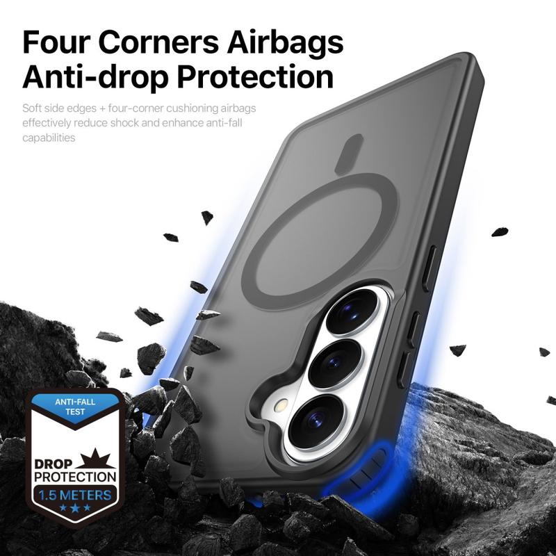 Protect your Samsung Galaxy S26 with a sleek matte cover that clicks straight onto MagSafe chargers and accessories. The Yind Series pairs a scratch-resistant PC backplate with shock-absorbing TPU edges and a precision-aligned magnetic ring, delivering cable-free power and all-round drop protection without bulky pockets.