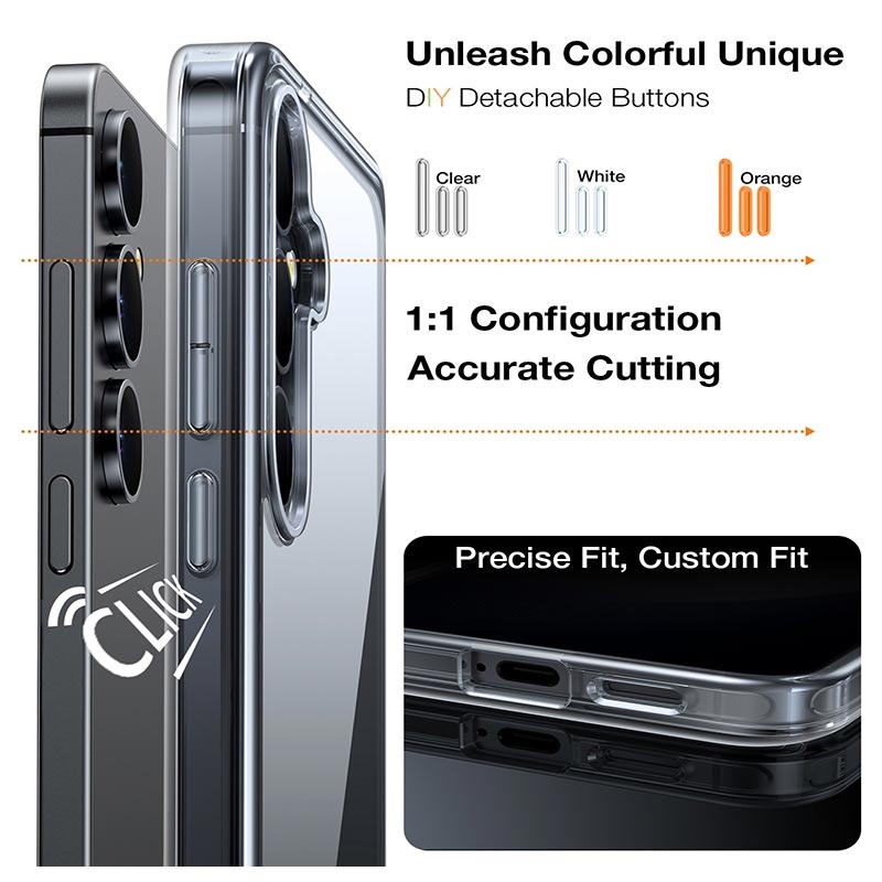 The case includes three interchangeable button colour sets, allowing you to personalise your Samsung Galaxy S26’s look. Easily swap buttons to match your style, outfit or mood and create a unique, customised appearance.