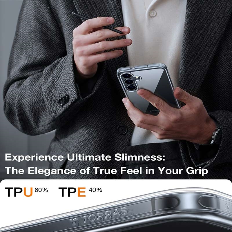 The Torras Skin-Touch case is designed for users who want refined aesthetics combined with dependable everyday protection. Crafted from a dual-material blend of rigid PC and flexible TPU, it delivers durability while maintaining a slim profile and a comfortable, soft-touch feel in the hand.